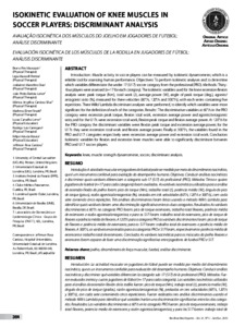 Mazuquin, Bruno Fles, Pereira, Ligia Maxwell, Dias, Josilainne Marcelino, Batista Junior, João Pedro, Silva, Mônica Angélica Cardoso, Finatti, Matheus Elmer, Leme, Lucas Carvalho, Carregaro, Rodrigo Luiz, Moura, Felipe Arruda et al (2015) Isokinetic evaluation of knee muscles in soccer players: discriminant analysis [Avaliação isocinética dos músculos do joelho em jogadores de futebol: análise discriminante]; [Evaluación isocinética de los músculos de la rodilla en jugadores de fútbol: análisis discriminante]. Revista Brasileira de Medicina do Esporte, 21 (5). pp. 364-368. ISSN 1517-8692