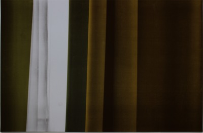 Curtain I depicting a curtain in a window of a hotel room is a border between the semiprivate place and the unknown city;