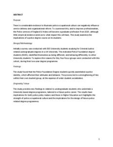 The study provides new findings in relation to undergraduate students who undertake a University based degree programme, tailored to a future police career. The results have implications for both police policy makers and those in Higher Education as it highlights the strength of police occupational culture and the implications for the design of future police related degree programmes.