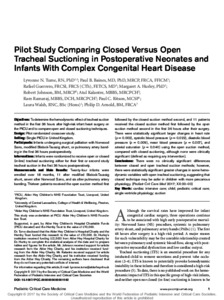 Pilot Study Comparing Closed Versus Open Tracheal Suctioning in Postoperative Neonates and Infants With Complex Congenital Heart Disease.