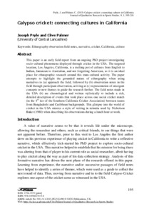 Pryle, Joseph and Palmer, Clive Alan orcid iconORCID: 0000-0001-9925-2811 (2015) Calypso cricket: connecting cultures in California. Journal of Qualitative Research in Sports Studies, 9 (1). pp. 195-218. ISSN 1754-2375