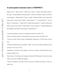 Luger, Rodrigo, Sestovic, Marko, Kruse, Ethan, Grimm, Simon L., Demory, Brice-Olivier, Agol, Eric, Bolmont, Emeline, Fabrycky, Daniel, Fernandes, Catarina S. et al (2017) A seven-planet resonant chain in TRAPPIST-1. Nature Astronomy, 1 (0129). ISSN 2397-3366