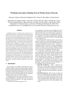 Andreou, Panayiotis orcid iconORCID: 0000-0002-6369-1094, Zeinalipour-Yazti, Demetrios, Chrysanthis, Panos K and Samaras, George (2008) Workload-aware query routing trees in wireless sensor networks. In: The 9th International Conference on Mobile Data Management (MDM’08), 27-30 April 2008, Beijing, China. (Unpublished)