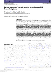 Early propagation of energetic particles across the mean field in turbulent plasmas.