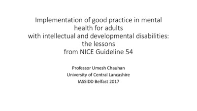 Implementation of good practice in mental health for adults with intellectual and developmental disabilities: the lessons from NICE Guideline 54.