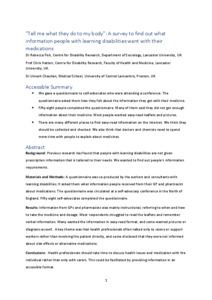 "Tell me what they do to my body": A survey to find out what information people with learning disabilities want with their medications.