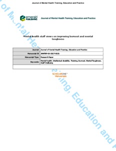 Purpose- Burnout in mental health staff is acknowledged as a major problem. The purpose of this paper is to gain an understanding of mental health staff views on improving burnout and mental toughness in mental health staff.