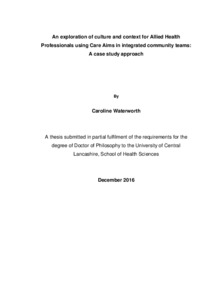 Waterworth, Caroline Jane (2016) An exploration of culture and context for Allied Health Professionals using Care Aims in integrated community teams: A case study approach. Doctoral thesis, University of Central Lancashire.