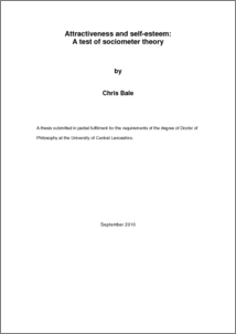 Bale, Christopher (2010) Attractiveness and self-esteem: A test of sociometer theory. Doctoral thesis, University of Central Lancashire.