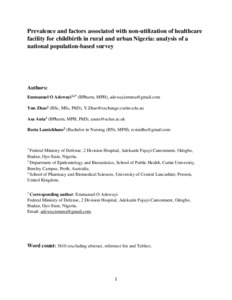 Prevalence and factors associated with non-utilization of healthcare facility for childbirth in rural and urban Nigeria: Analysis of a national population-based survey.