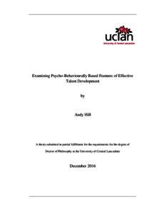 Hill, Andrew (2016) Examining the psychobehavioural features of effective talent development. Doctoral thesis, University of Central Lancashire.