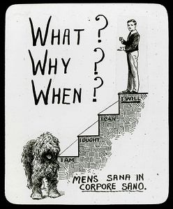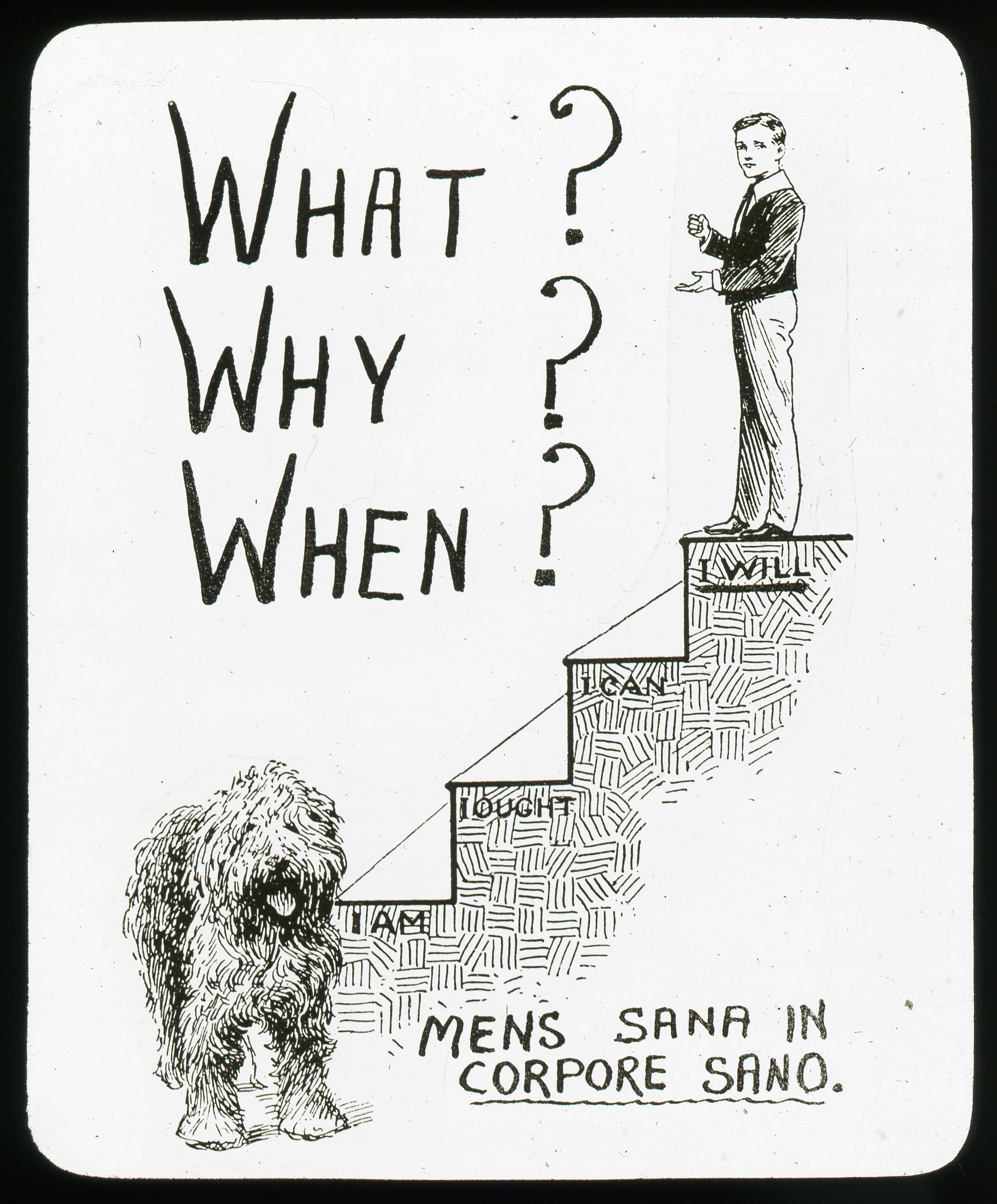British National Temperance League (2017) The Four Steps From Dog to Boy : I am : I ought : I can : I will : What? Why? When? Mens sana in corpore sano. [Image]