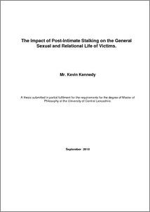 Kennedy, Kevin P (2010) The Impact of Post-Intimate Stalking on the General Sexual and Relational Life of Victims. Other thesis, University of Central Lancashire.