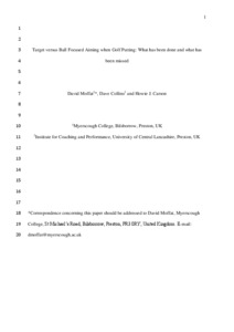 Moffat, D., Collins, D., orcid iconORCID: 0000-0002-7601-0454 and Carson, H.J. orcid iconORCID: 0000-0002-3785-606X (2017) Target versus ball focused aiming when golf putting: What has been done and what has been missed. International Journal of Golf Science, 6 (1). pp. 35-55. ISSN 2168-7595