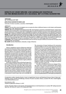 Effects of Court Specific and Minimalist Footwear on the Biomechanics of a Maximal 180° Cutting Manoeuvre.