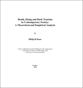 The research finds that in a contemporary secular age where ordinary and normal death is sequestered behind medical and professional façades, yet abnormal and extraordinary death is recreated for popular consumption, dark tourism plays a mediating role between life and death. Ultimately, therefore, the thesis argues that dark tourism is a (new) mediating institution within secularised death sequestered societies, which not only provides a physical place to link the living with the dead, but also allows the Self to construct contemporary meanings of mortality, and to reflect and contemplate both life and death through consuming the Significant Other Dead.