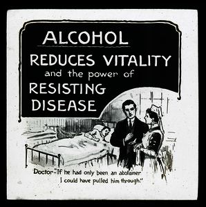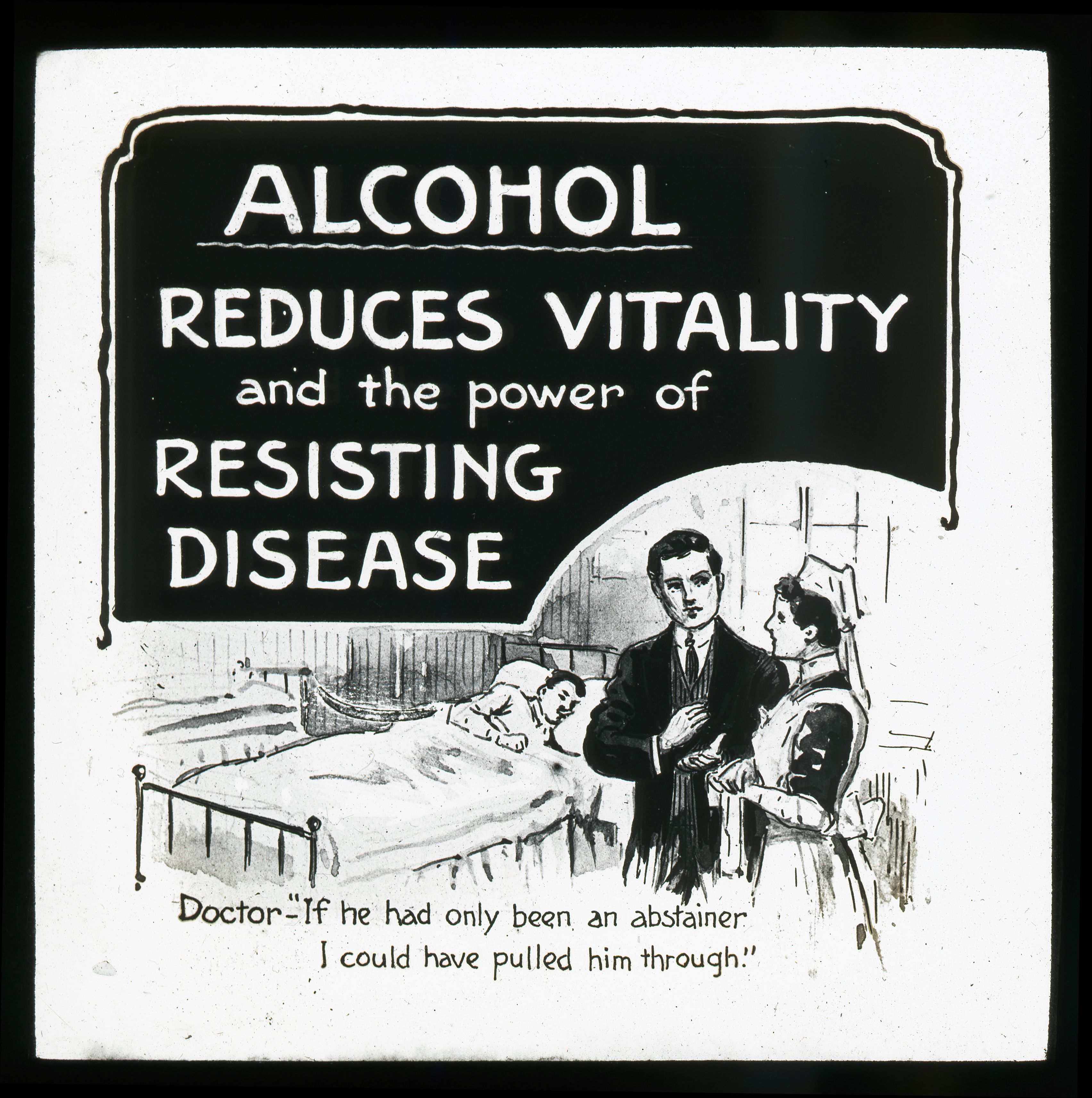 This set of lantern slides, ‘Speaking Pictures’ sums up the use of visual media in the temperance movement. It combines images, slogans, and comments from respected figures such as Sir Victor Alexander Haden Horsley, a scientist and professor who was made Director of Surgery of the British Army Medical Service during the 1914-18 war.