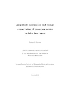 Bowman, Dominic Matthew (2016) Amplitude modulation and energy conservation of pulsation modes in delta Scuti stars. Doctoral thesis, University of Central Lancashire.