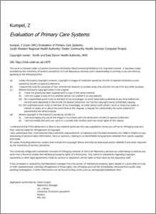Kumpel, Z (1981) Evaluation of primary care systems. Project Report. UNSPECIFIED. (Unpublished)