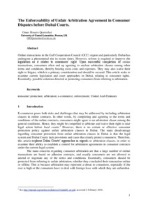 Qouteshat, Omar Husain jamil (2016) The enforceability of the unfair arbitration agreement in consumer disputes before Dubai courts. Arab Law Quarterly, 31 (1). pp. 1-29. ISSN 0268-0556