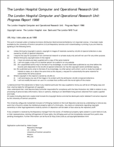 The London Hospital, Operational Research Unit (1967) The London Hospital Computer and Operational Research Units Progress Report 1966. Project Report. UNSPECIFIED. (Unpublished)