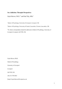 Sexual addiction may be defined as sexual behaviour that is “compulsive and yet continues despite adverse consequences”. Knowledge and understanding of sexual addiction has been impaired by the use of multiple labels, definitions, and assessment procedures, hence the present study investigated therapist perspectives and experiences of assessing and treating the condition. Interviews were conducted with nine psychosexual therapists and subjected to interpretive phenomenological analysis. Three superordinate themes emerged from the analysis. These were distress, risk, and treatment. The distress theme included three sub-themes: stress and coping; suicidal ideation; and partner experience. Three sub-themes formed the risk theme: physical safety; disease, dysfunctions, and pregnancy; and co-addiction. The treatment theme contained three sub-themes: awareness; assessment and diagnosis; and successful therapy. Findings have important implications for the diagnosis and treatment of sexual addiction. Future research should investigate these themes further and introduce interventions to support the safety and well-being of sexual addiction clients