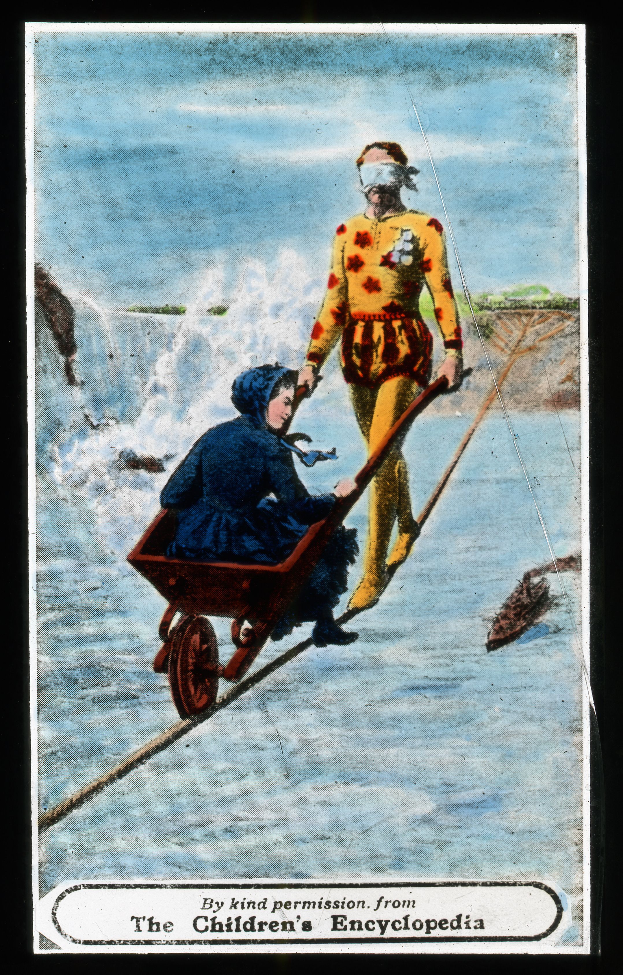 British National Temperance League (2017) The Children's Encyclopedia : [Tightrope Walking a Woman in a Whelbarrow]. [Image]