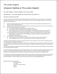 The London Hospital Computer Project Computer Facilities at The London Hospital. Working Paper. UNSPECIFIED. (Unpublished)