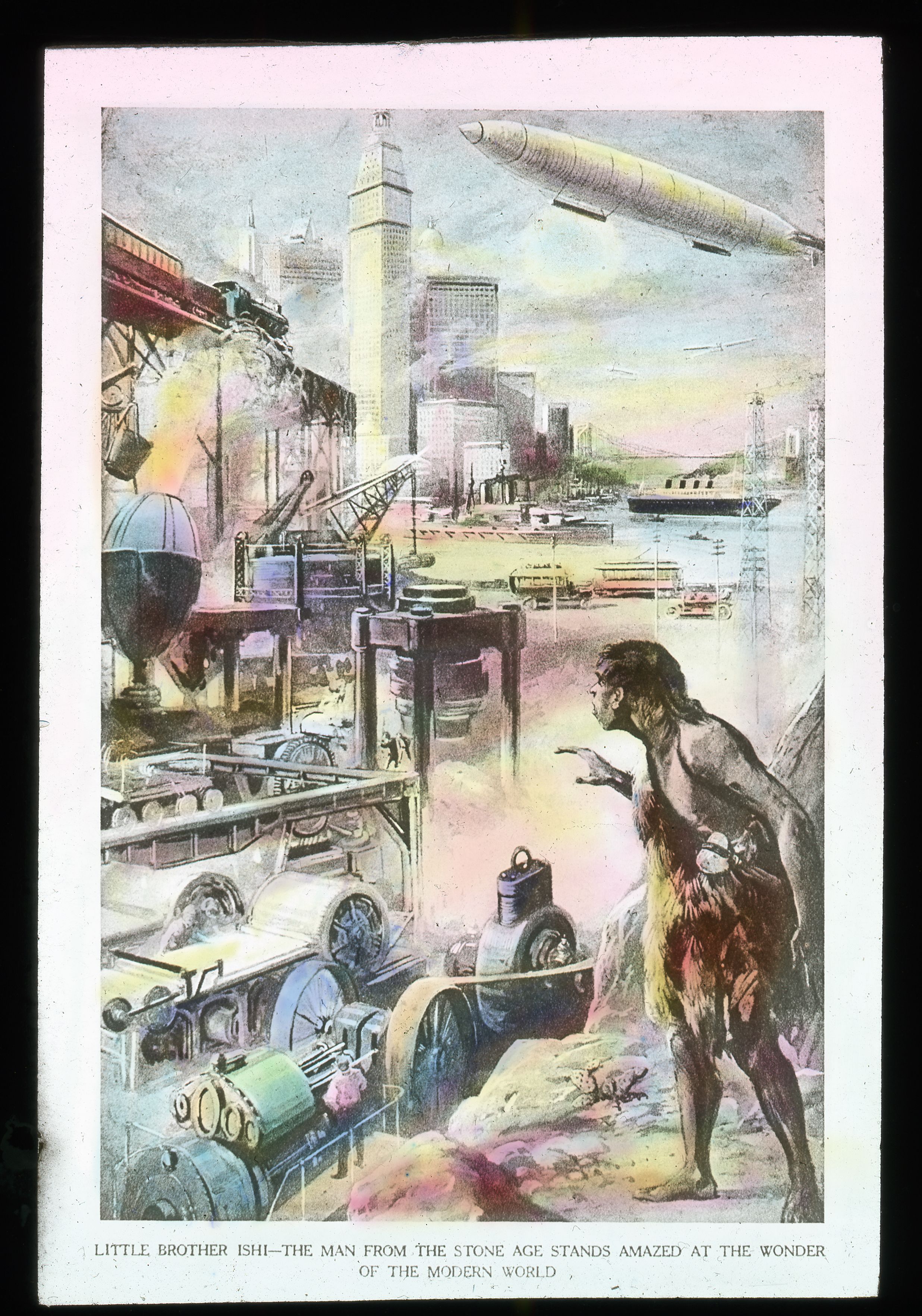British National Temperance League (2017) The Children's Encyclopedia : Little Brother Ishi - the Man from the Stone Age Stands Amazed at the Wonder of the Modern World. [Image]