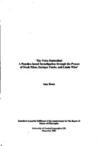 The voice embodied: A practice-based investigation through the Praxes of Noah Pikes, Enrique Pardo, and Linda Wise