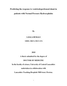 Balamurali, Gopal (2010) Predicting the response to ventriculoperitoneal shunt in patients with Normal Pressure Hydrocephalus. Doctoral thesis, University of Central Lancashire.