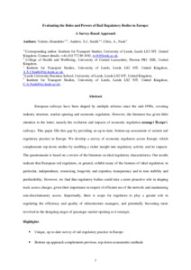 Evaluating the roles and powers of rail regulatory bodies in Europe: A survey-based approach.