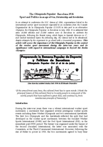In an attempt to undermine the IOC Games of 1936, organisations linked to the international worker sport movement responded to an invitation from the Comité Organizador de la Olimpiada Popular (COOP) to take part in an alternative Olympics, the Olimpiada Popular, in Barcelona in July 1936. It is estimated that some 10,000 athletes and 25,000 visitors were in Barcelona to celebrate the Olimpiada. Following the Fascist rising, which began in Spanish Morocco on 17 July, and reached mainland Spain the following day, the games had to be abandoned, despite attempts by the organisers to go ahead with a truncated programme. This article will assess the importance of the Olimpiada Popular in the context of the worker sport movement during the inter-war years and its significance with regard to the international campaign to boycott the Berlin Olympics.