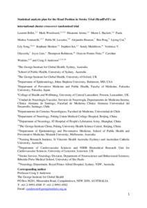 Billot, Laurent, Woodward, Mark, Arima, Hisatomi, Hackett, Maree L, Muñoz Venturelli, Paula, Lavados, Pablo M, Brunser, Alejandro, Peng, Bin, Cui, Liying et al (2017) Statistical analysis plan for the Head Position in Stroke Trial (HeadPoST): An international cluster cross-over randomized trial. International Journal of Stroke, 12 (6). pp. 667-670. ISSN 1747-4930