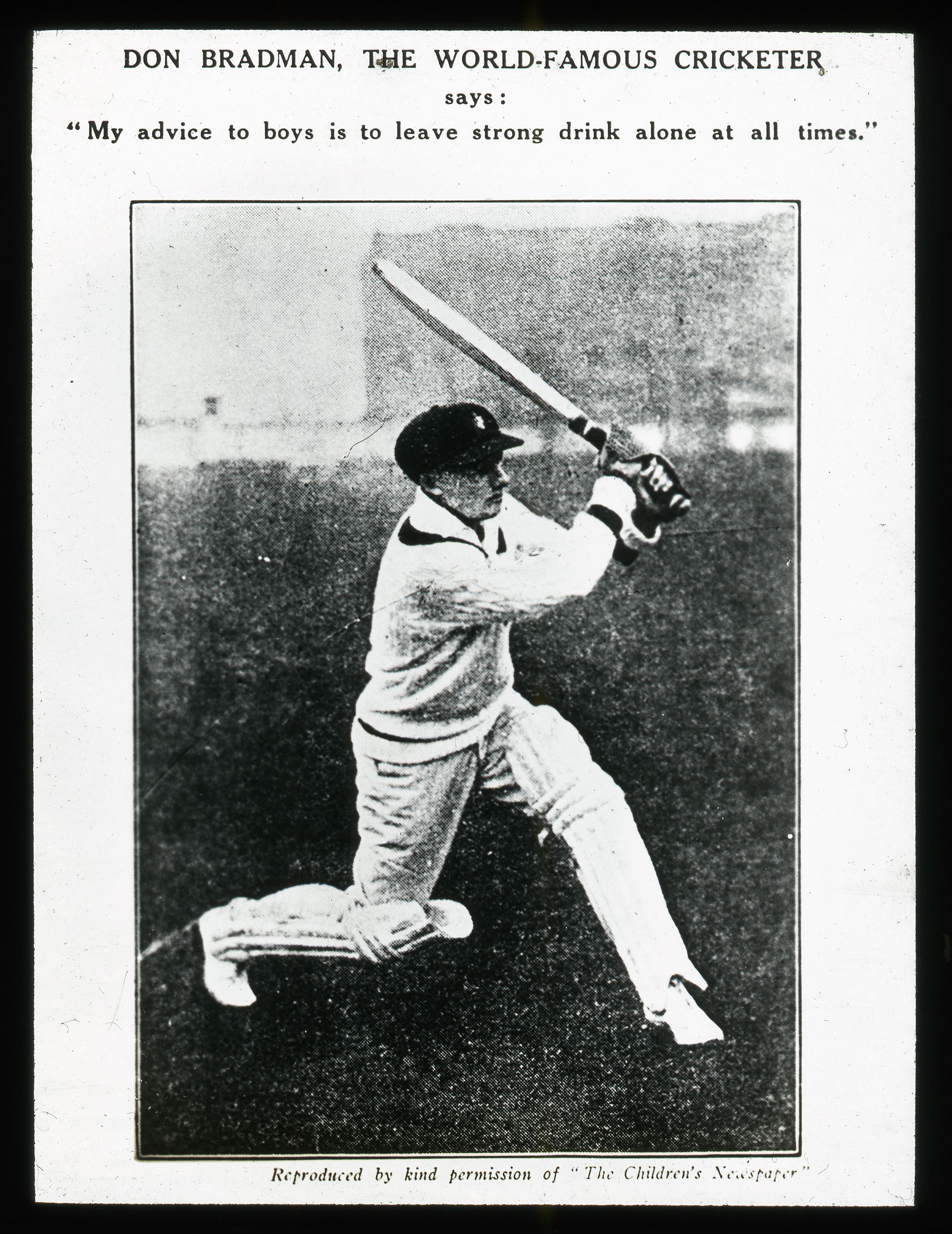 British National Temperance League (2017) Anti Drink Individuals Views and Miscellaneous : Don Bradman. [Image]