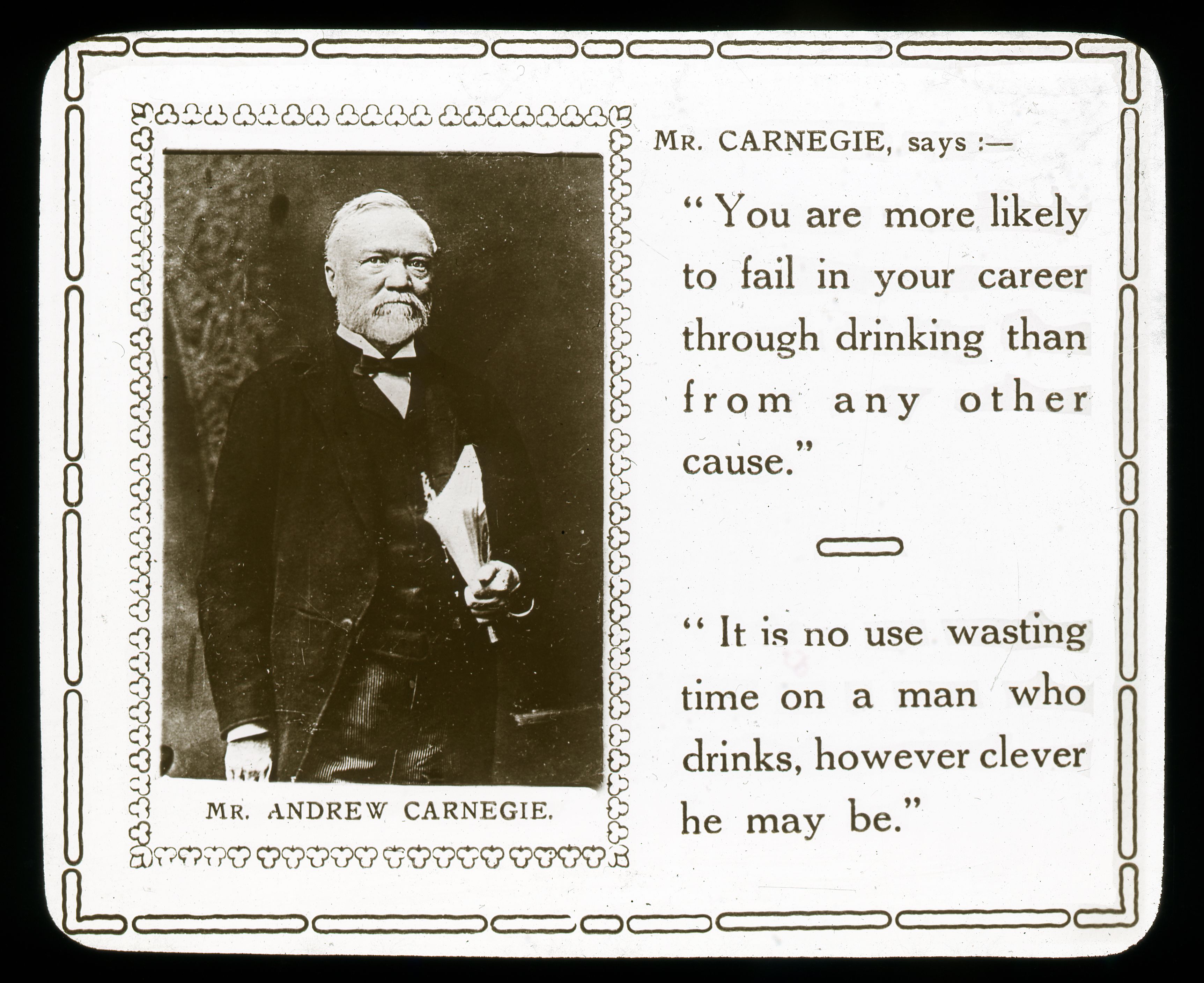The successful businessman Andrew Carnegie who was responsible for the expansion of American Steel warns of the effect of drink on individuals’ careers.
