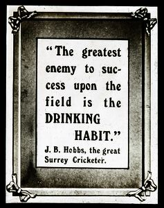 This is a pro temperance statement from Jack Hobbs, one of the leading cricketers of the time who played for both Surrey at a county level and England at international level.
