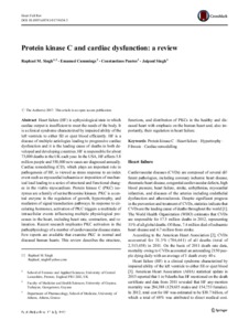 Heart failure (HF) is a physiological state in which cardiac output is insufficient to meet the needs of the body. It is a clinical syndrome characterized by impaired ability of the left ventricle to either fill or eject blood efficiently. HF is a disease of multiple aetiologies leading to progressive cardiac dysfunction and it is the leading cause of deaths in both developed and developing countries. HF is responsible for about 73,000 deaths in the UK each year. In the USA, HF affects 5.8 million people and 550,000 new cases are diagnosed annually. Cardiac remodelling (CD), which plays an important role in pathogenesis of HF, is viewed as stress response to an index event such as myocardial ischaemia or imposition of mechanical load leading to a series of structural and functional changes in the viable myocardium. Protein kinase C (PKC) isozymes are a family of serine/threonine kinases. PKC is a central enzyme in the regulation of growth, hypertrophy, and mediators of signal transduction pathways. In response to circulating hormones, activation of PKC triggers a multitude of intracellular events influencing multiple physiological processes in the heart, including heart rate, contraction, and relaxation. Recent research implicates PKC activation in the pathophysiology of a number of cardiovascular disease states. Few reports are available that examine PKC in normal and diseased human hearts. This review describes the structure, functions, and distribution of PKCs in the healthy and diseased heart with emphasis on the human heart and, also importantly, their regulation in heart failure.
