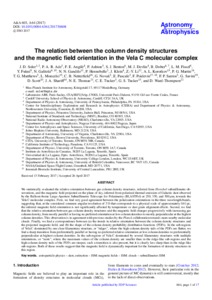 Soler, J.D, Ade, P.A.R, Angilè, F.E, Ashton, P, Benton, S.J, Devlin, M.J, Dober, B.J, Fissel, L.M, Fukui, Y et al (2017) The relation between the column density structures and the magnetic field orientation in the Vela C molecular complex. Astronomy and Astrophysics, 603 . ISSN 0004-6361