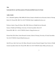 Systematic Review and Meta-Analysis of Psychosocial Risk Factors for Stroke.