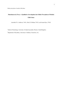 Munchausen by Proxy: A Qualitative Investigation into Online Perceptions of Medical Child Abuse.