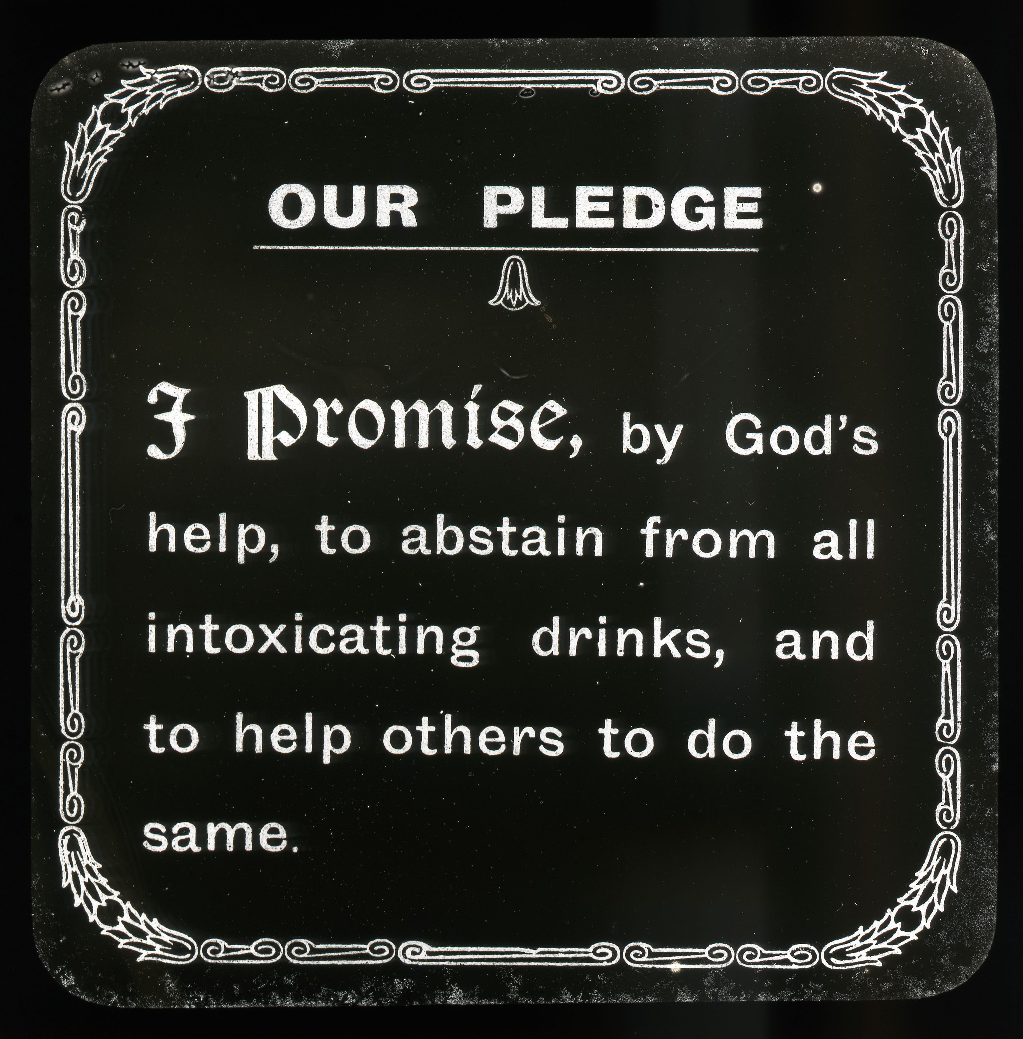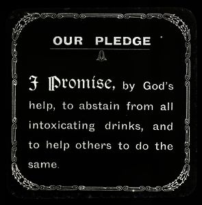 Magic Lantern shows were sometimes used to explain abstention to the audience; this slide is an example of this as the pledge could be read and understood before it was signed. It was also perhaps used to remind people of their promise.