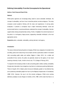 Whilst police agencies are increasingly being asked to assist vulnerable individuals, the concept of vulnerability, and how it how it should be policed, remains ambiguous. This study compares current academic thinking with the views and experiences of serving police employees. It presents a conceptual map to depict intersecting individual, social and environmental factors, to assist practitioners understand the concept of vulnerability, that also supports data sharing and partnership working. Further, it highlights the central importance of the police in a multi-agency triage process, signposting vulnerable individuals to the most appropriate service.