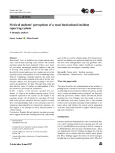 Medical students' perceptions of a novel institutional incident reporting system : A thematic analysis.