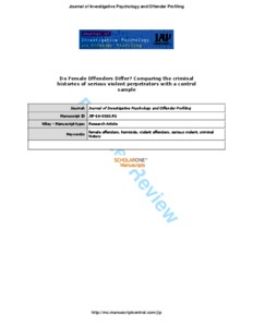 Do female offenders differ? Comparing the criminal histories of serious violent perpetrators with a control sample.