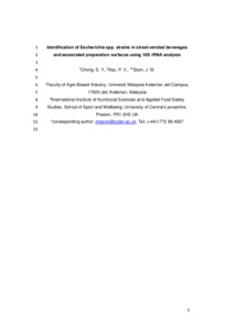 Identification of Escherichia spp. strains in street-vended beverages and associated preparation surfaces using 16S rRNA analysis.