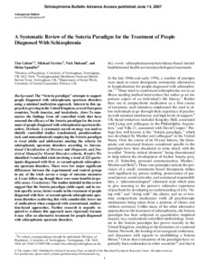 A Systematic Review of the Soteria Paradigm for the Treatment of People Diagnosed With Schizophrenia
