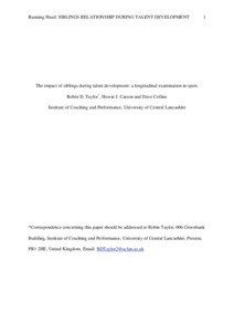 The impact of siblings during talent development: A longitudinal examination in sport.