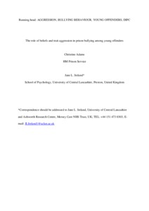 The role of beliefs and trait aggression in prison bullying among young offenders.