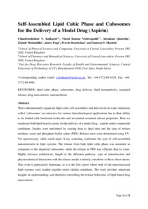 Self-Assembled Lipid Cubic Phase and Cubosomes for the Delivery of Aspirin as a Model Drug.